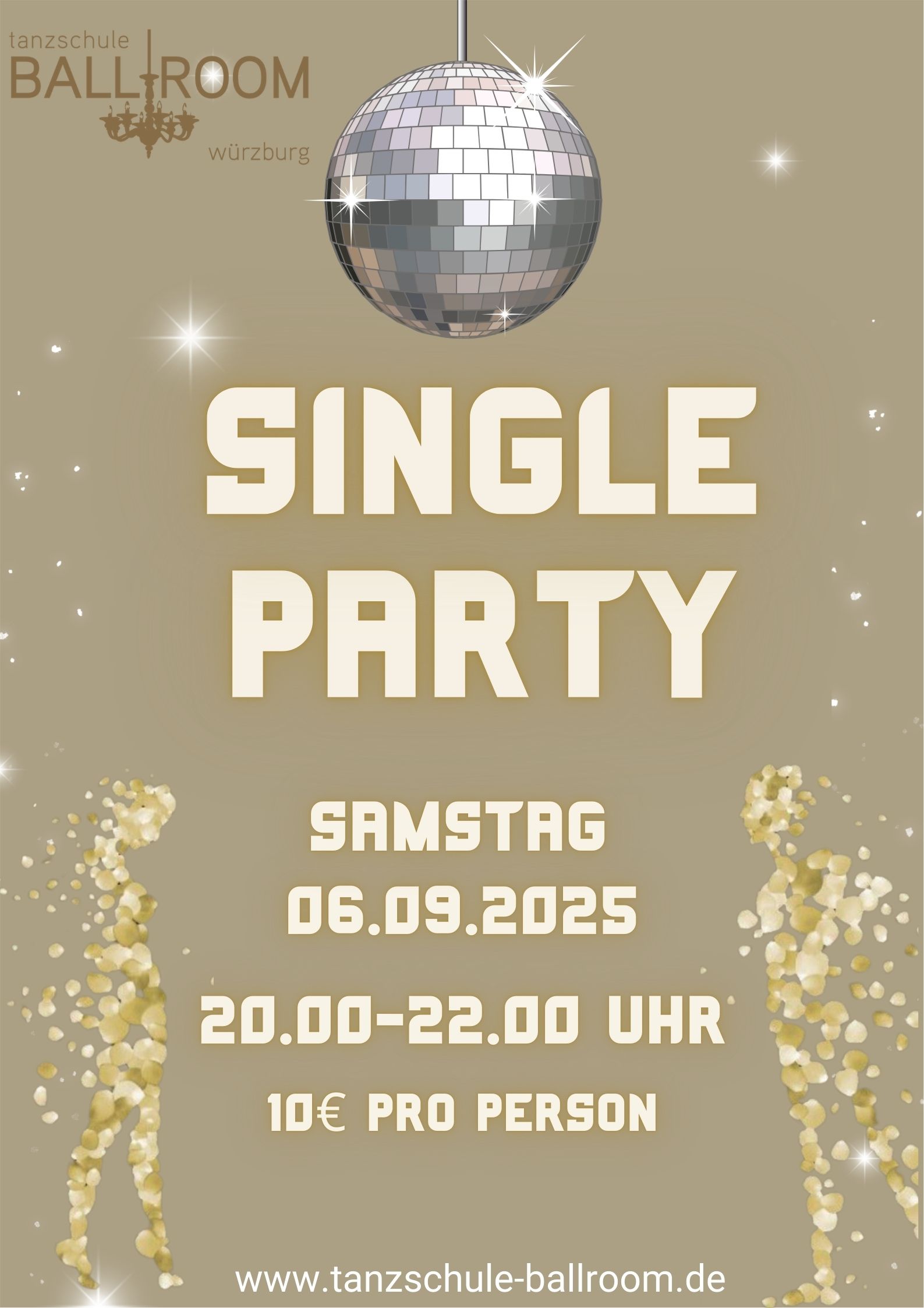 BALLROOM Single Party Samstag, 06.09.2025 – 20.00-22.00 Uhr Bevor die Kurssaison bei BALLROOM starten, bringen wir tanzwillige Herren und Damen im Rahmen unserer ersten BALLROOM